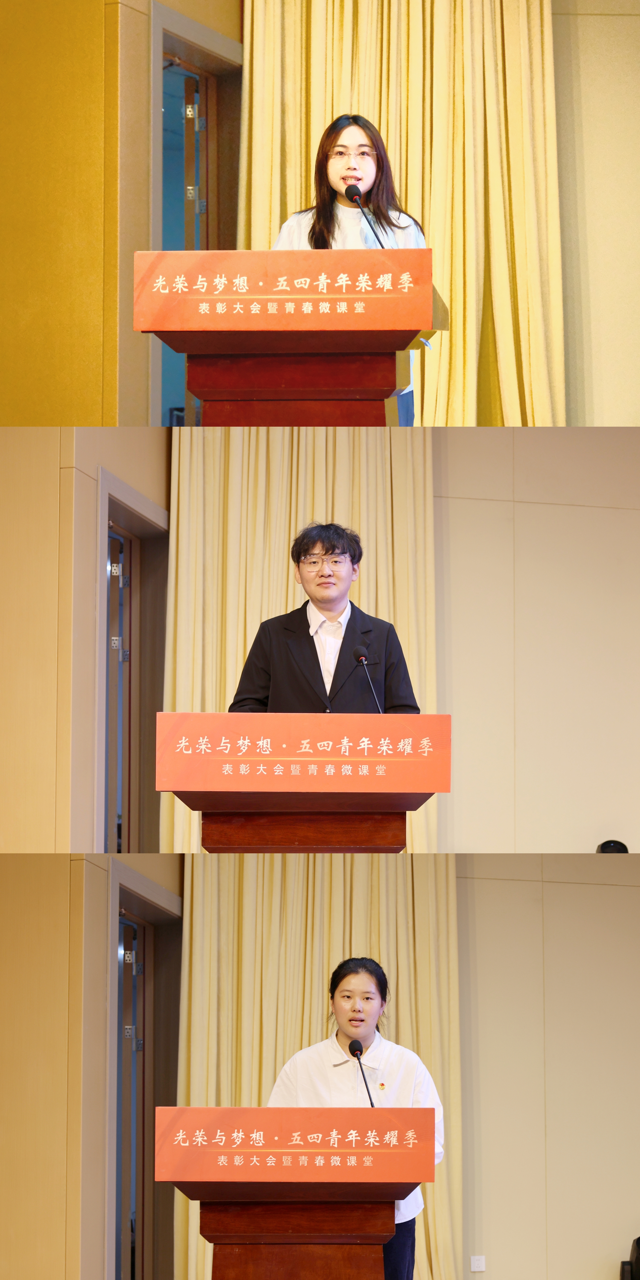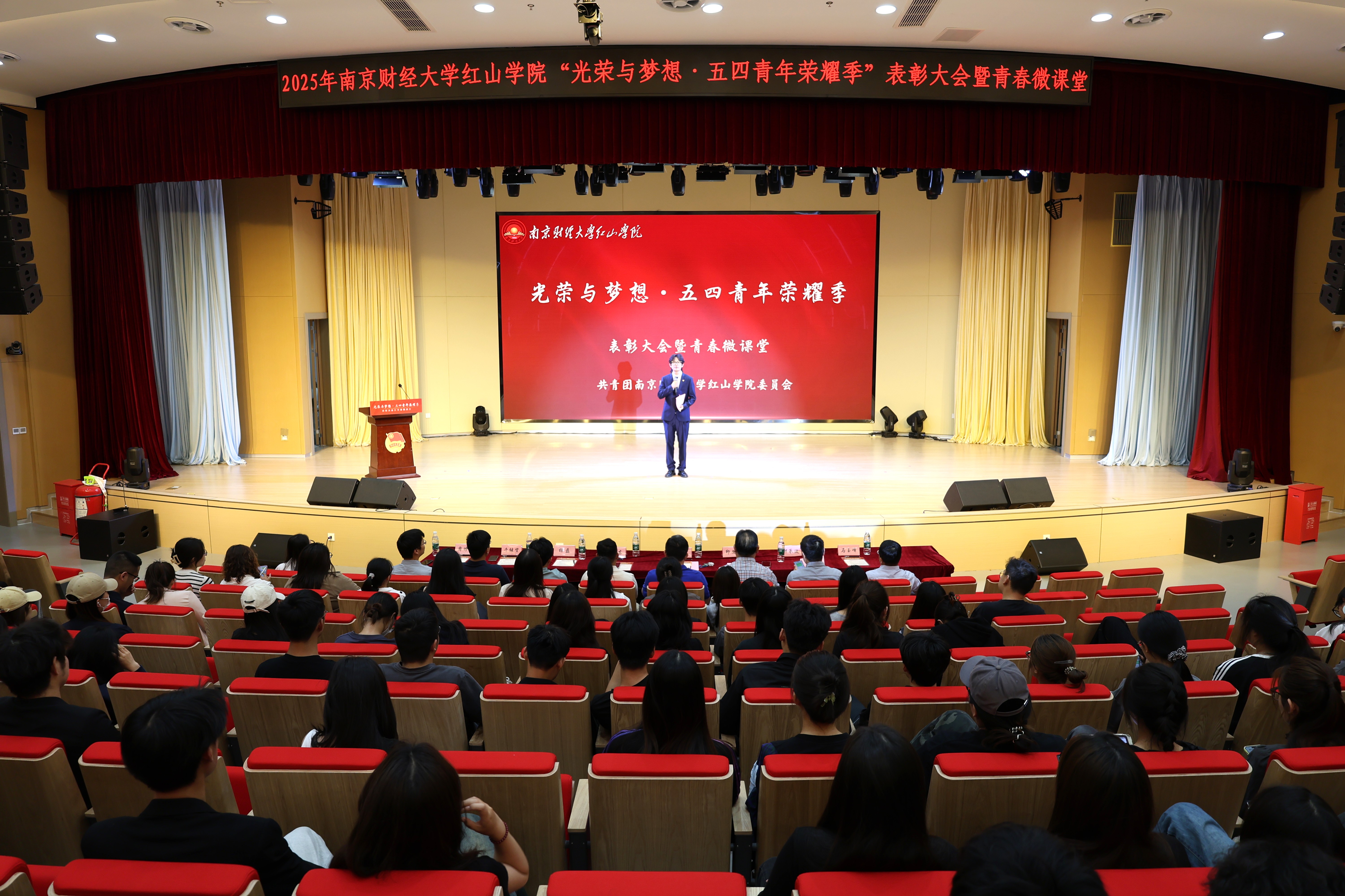 5月7日,开云官网团委在高淳校区鹿鸣剧院举行“光荣与梦想·五四青年荣耀季”表彰大会暨青春微课堂。学院党委书记孙彬,党委副书记高永东,党委学生工作部、学生处(合署)处长印文郁,党委教师工作部、人事处(合署)处长杨磊,科研处处长郭承波,团委书记千继贤,党委办公室、院长办公室(合署)副主任马玉峰,教务处副处长薛帅通出席表彰大会。各学院团总支书记、团委全体工作人员、第十三期青马班学员、师生团员代表等参加活动。
