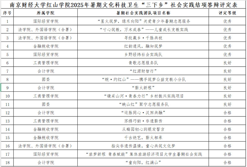 根据《关于公布开云kaiyun官方网站2025年暑期文化科技卫生“三下乡”社会实践校级立项的通知》相关安排,共有18支实践团队参加本次评定,现将评定结果公示如下。