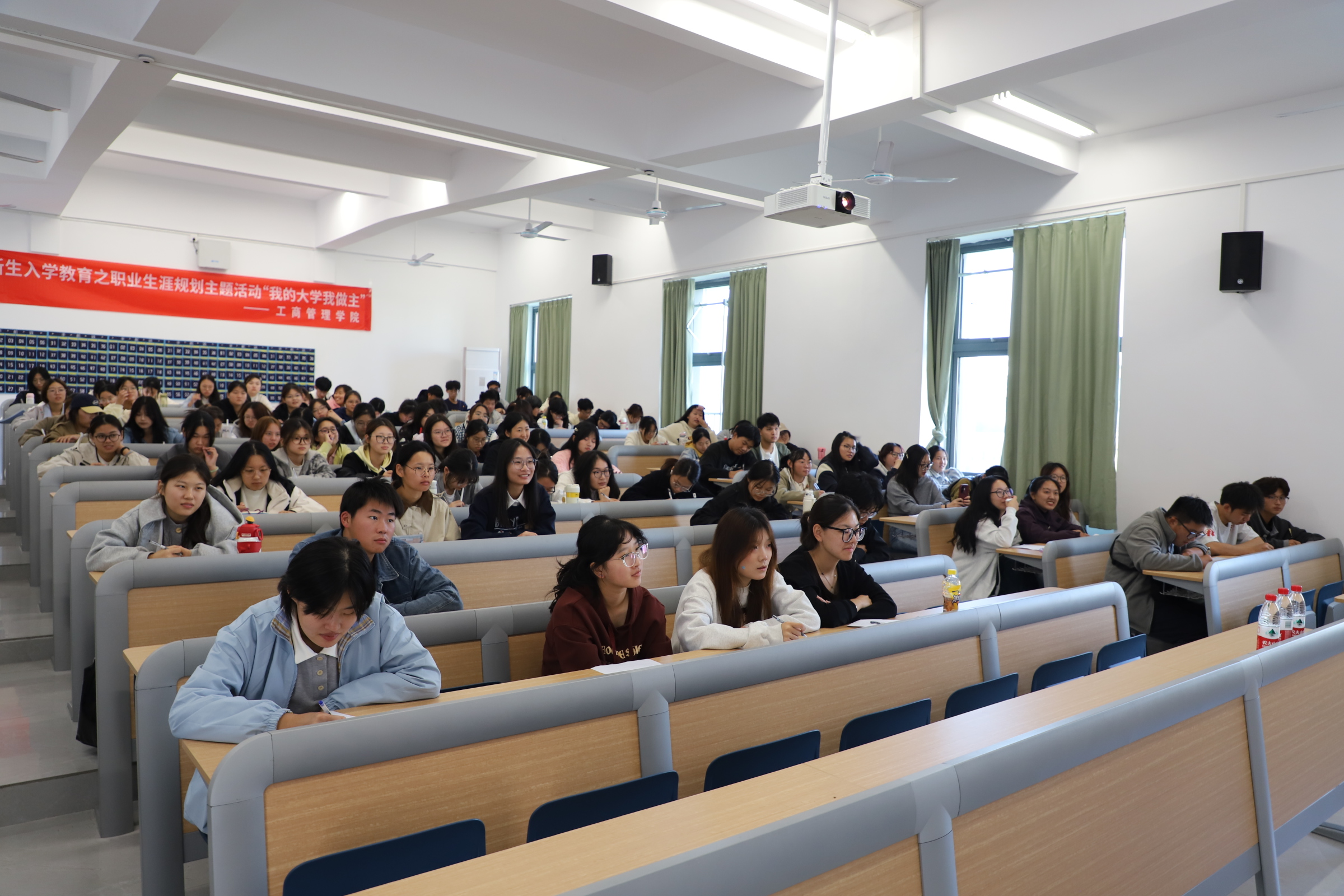 10月22日,工商管理学院在启智一区303教室举办“我的大学我做主”讲座。讲座由新海船集团行政总裁、工会主席、红山学院优秀校友何晶担任主讲人。25级市场营销专业学生积极响应参与,现场气氛热烈。