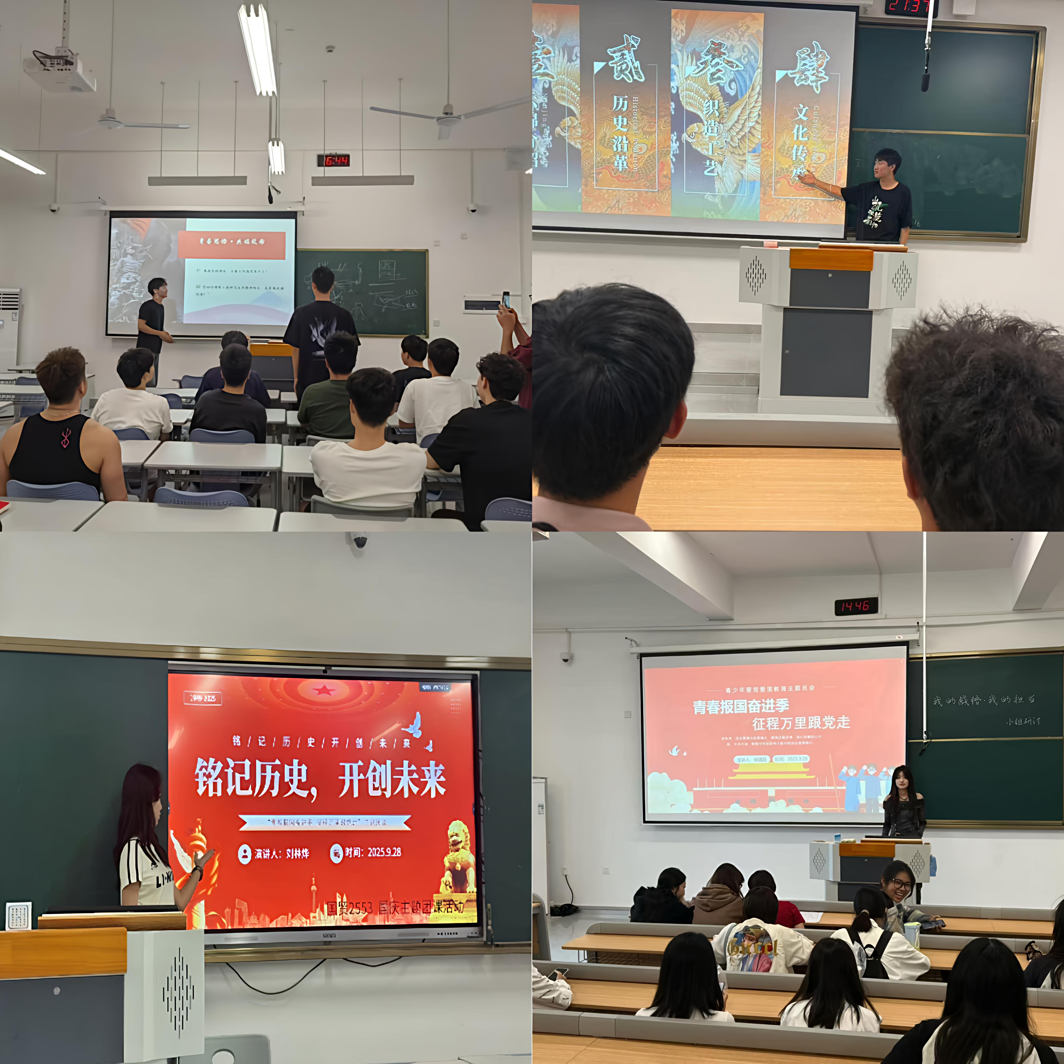 国际经贸学院团总支面向全院团支部开展国庆主题团日活动。国贸2553班、商务2552班等班级开展理论学习活动,深刻理解国情与时代使命;贸经2553班组织非遗探访,传承优秀文化根脉,激发爱国自信;商务2371班组织退伍同学分享军旅经验,弘扬吃苦耐劳、勇于担当的精神。通过系列主题教育与实践活动号召全体团员青年在新征程上砥砺前行,矢志为国为民贡献青春力量,切实实现学生全周期成长目标。