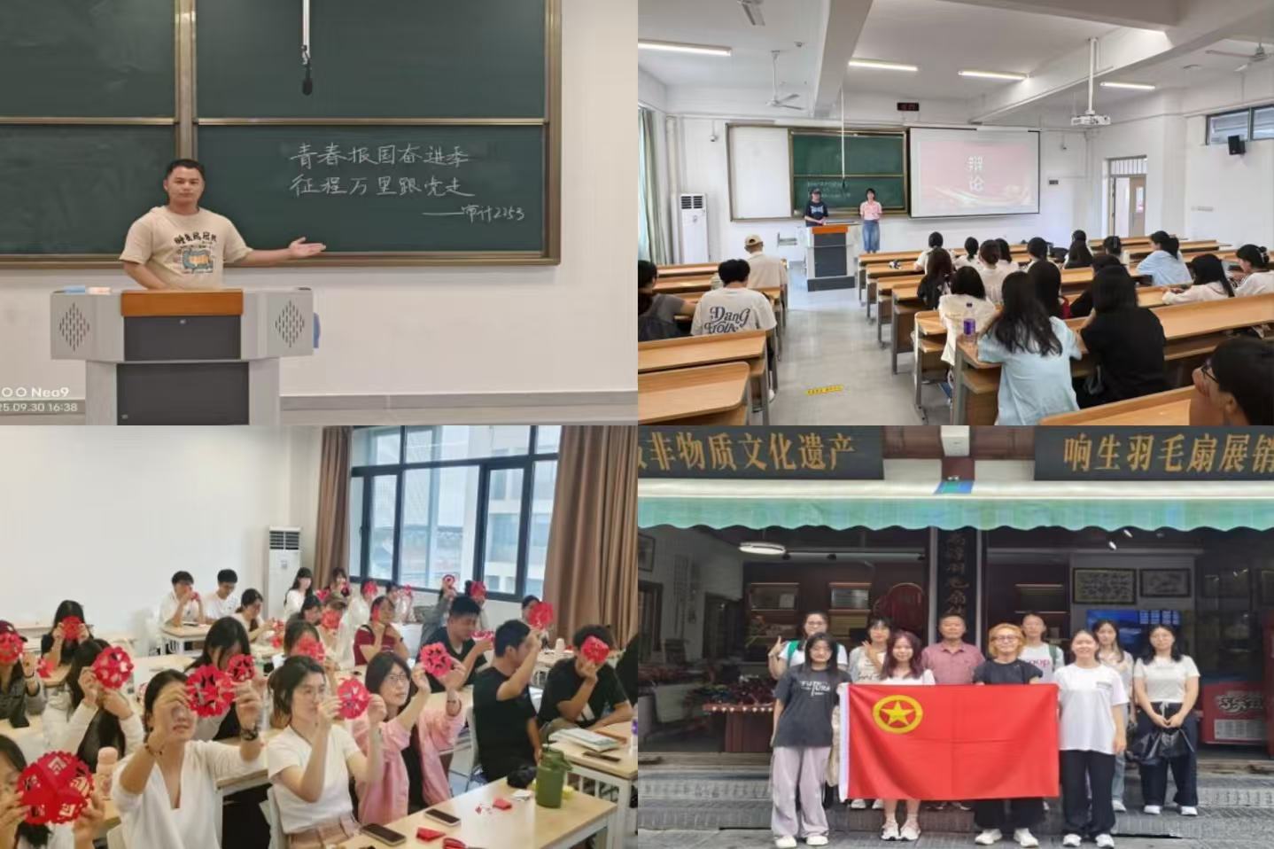 法学院、外国语学院(合署)团总支组织全体团员开展国庆主题团日活动,让青春力量与家国情怀同频共振。团员青年们开展爱国知识竞答,回顾党与国家发展史上的关键事件、重要会议与理论成果,夯实全体同学的思想理论基础。通过组织开展非遗探访活动,以致敬文化传统的方式为祖国庆生,团员们深刻理解文化传承对民族复兴的重要意义,凝聚起了爱国情怀,增强了民族自豪感与责任感。