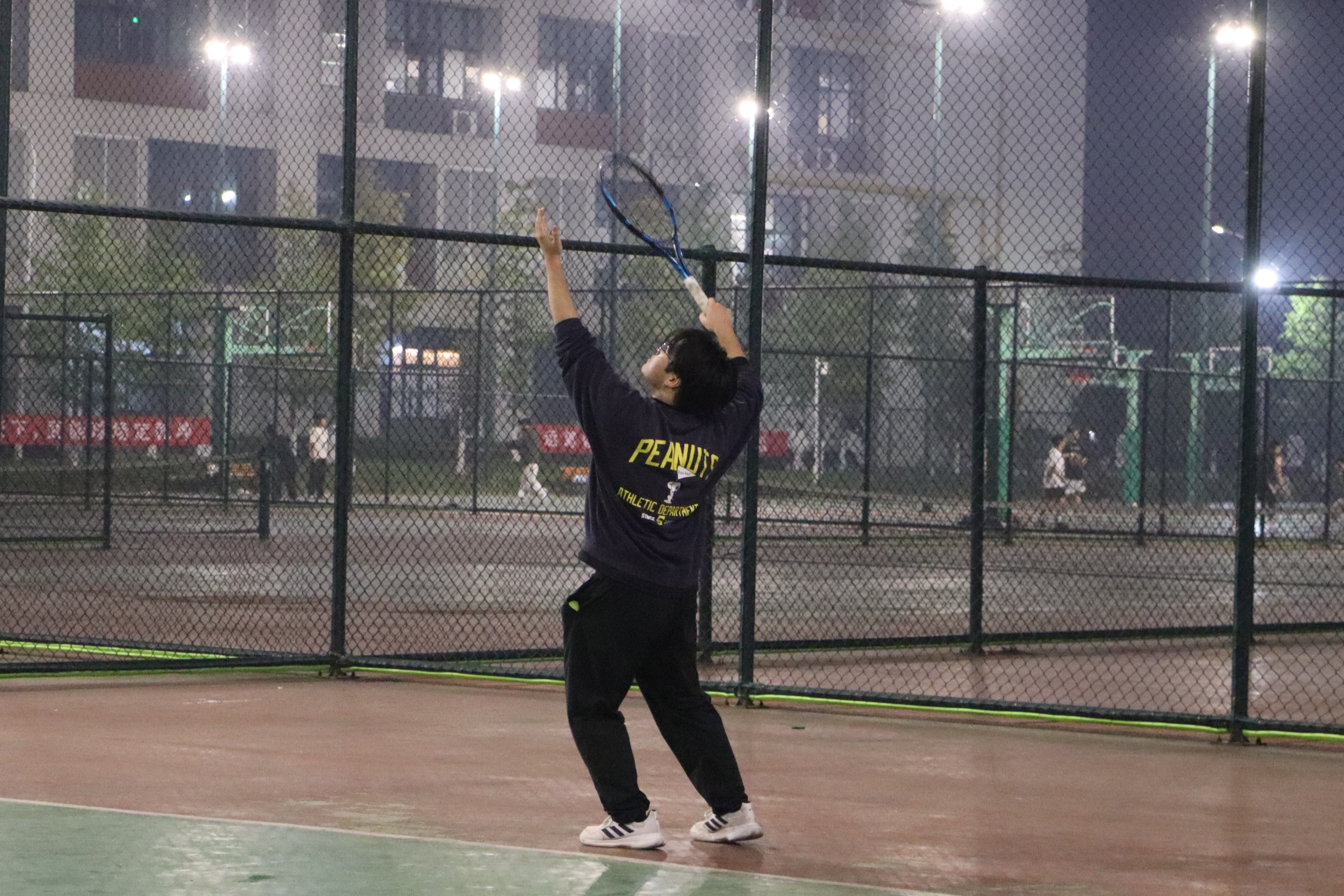 11月14日,网球社在高淳校区网球场举办“ACE杯”网球赛,活动吸引众多学生积极参与,活动现场气氛热烈。