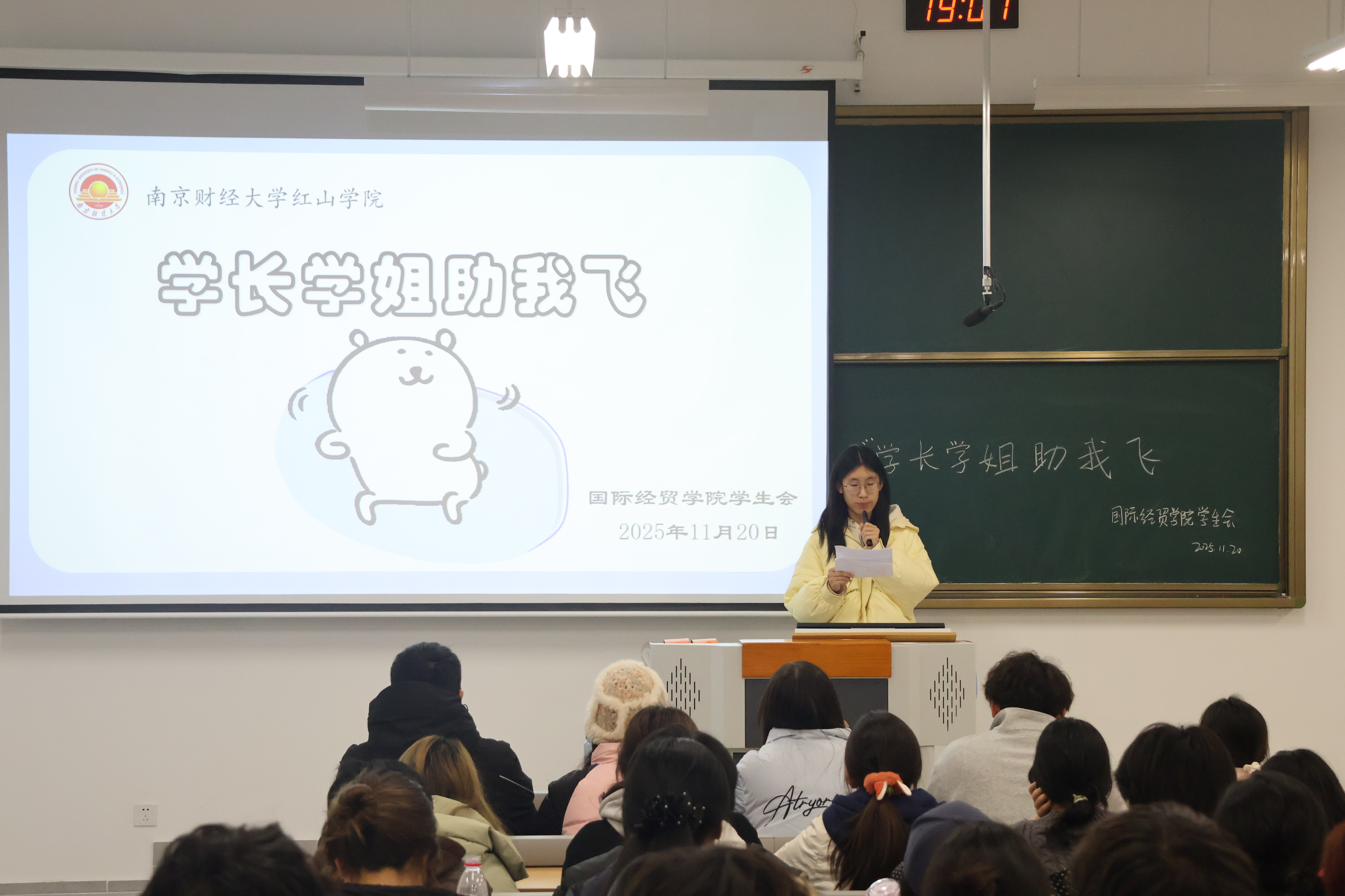 11月20日,国际经贸学院学生会在智圆A区104教室举办“学长学姐助我飞”活动。活动现场气氛热烈,同学们积极参与。