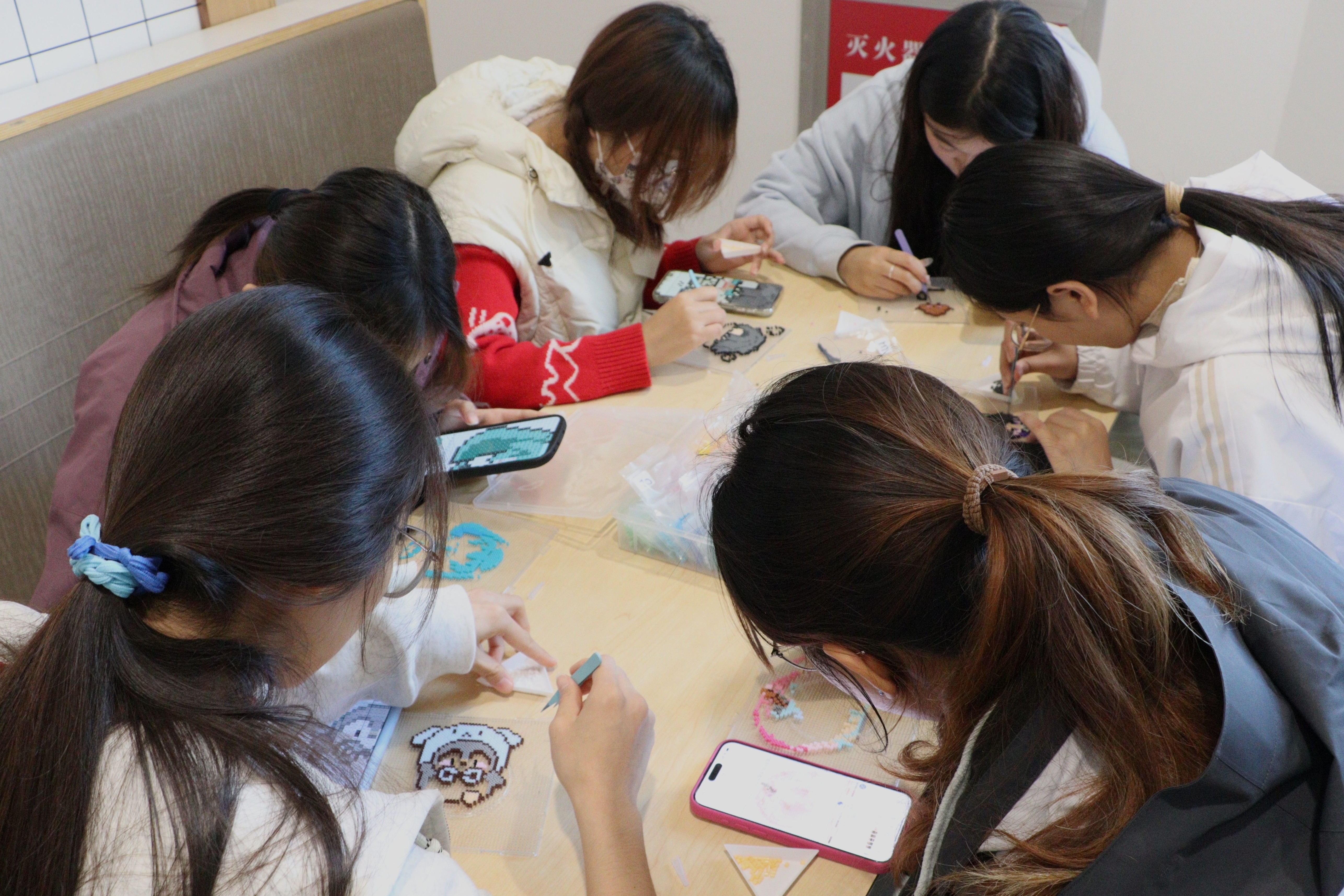 活动伊始,工作人员有序发放拼豆材料、模板及工具,为参与同学做好充足准备。期间,同学们在创作区域,或参照模板勾勒造型,或发挥创意自主设计,专注地将五彩拼豆逐一嵌入卡槽。创作过程中,大家相互交流技巧、分享灵感,现场氛围融洽,拍摄人员全程记录同学们的创作瞬间与精美作品,定格每份创意与喜悦。活动尾声,全体参与人员合影留念,负责人进行总结发言,对活动成效表示肯定并致谢所有参与者。