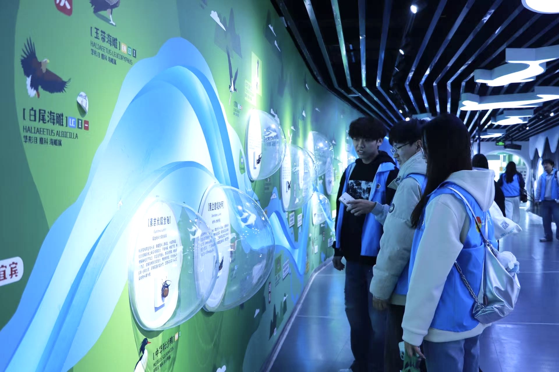 进入长江江豚科教中心,在工作人员的引导下,宣讲团成员沉浸式参观了标本陈列展区,开启了一场长江生物探秘之旅。展区内,中华鲟、碧凤蝶、黄边鬼艳锹甲等珍稀生物完整标本静静陈列,成员们直观了解到长江流域生物多样性,深刻体会每一种生物在生态链中的重要价值,也更明晰了生物多样性保护的紧迫性。在科教中心影音厅,成员们集体观看了长江生态保护主题短片,深入学习江豚种群保护、长江禁渔等生态修复举措。观影结束后,成员们还围绕长江流域生态环境、江豚生活习性及数量等知识进行答题,进一步坚定了以宣讲传递生态理念、以行动守护长江家园的决心。