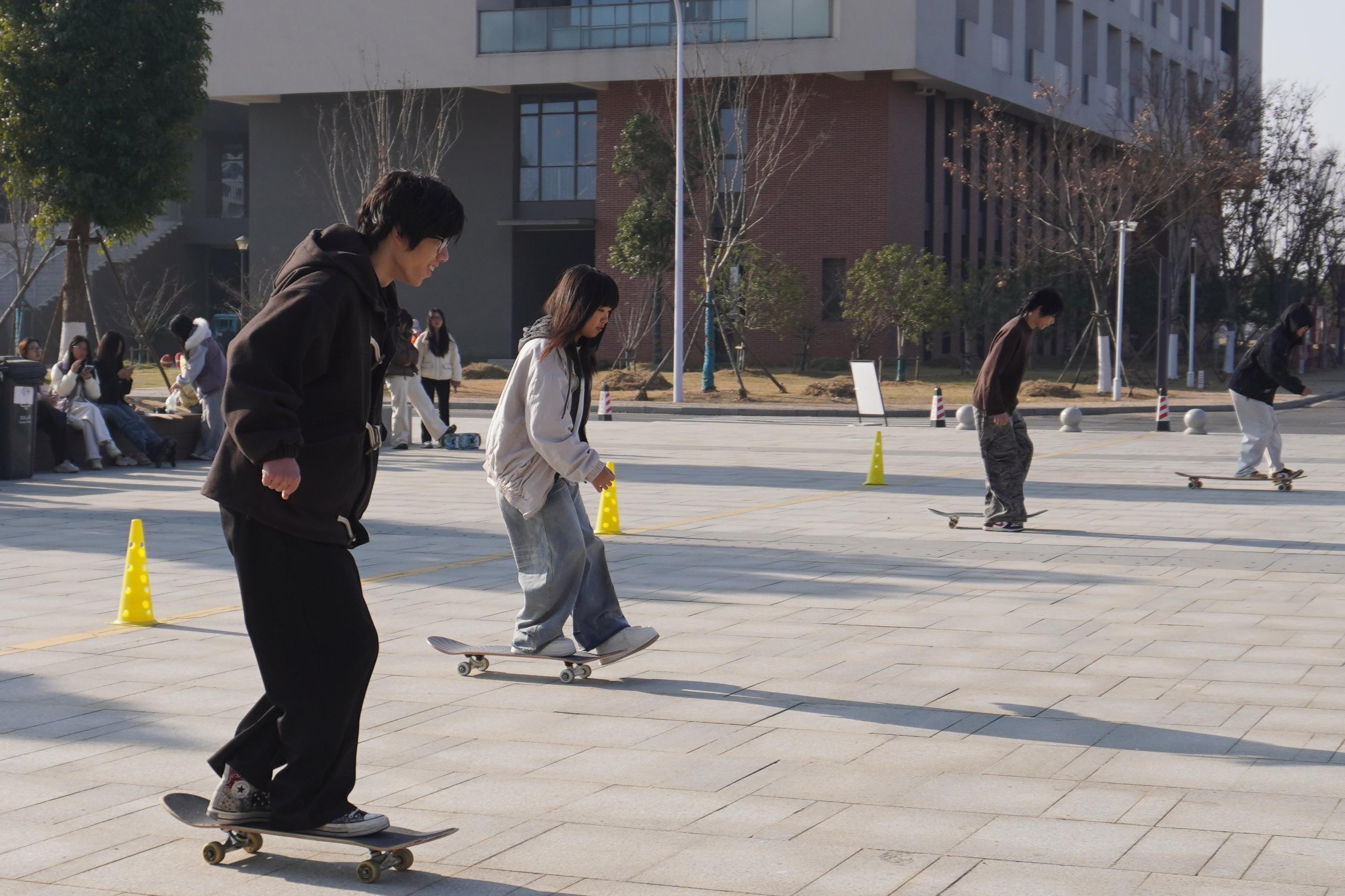 活动伊始,经验丰富的轮滑玩家带领新成员参与体验,同学们在掌握基础滑行技巧后,踊跃参与趣味轮滑赛,赛事依据成绩评选出前三名,并为获奖者颁发纪念小礼品,参与赛事的同学在滑板板面上进行创意涂鸦,现场气氛热烈。同学们参与热情高涨,也吸引了许多零基础的同学前来尝试。