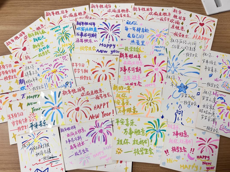 校学生会制作新年祝福卡片