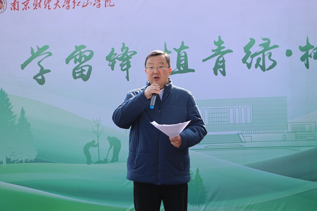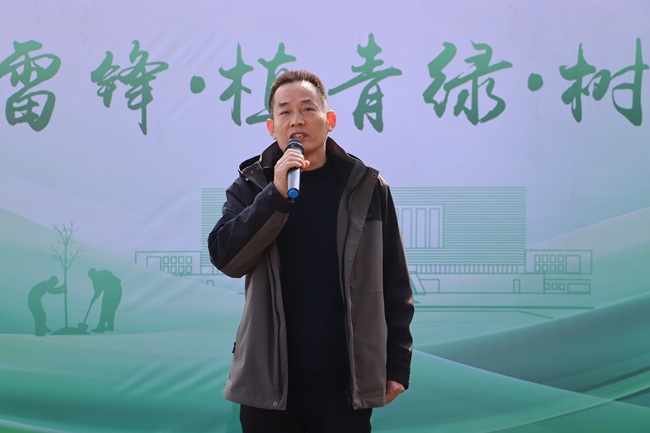 党委书记孙彬致辞。他首先代表党委向精心组织此次活动的团委、后勤处等部门表示感谢,并向投身劳动实践的全体师生致以诚挚问候。他回顾了学院过去一年在生态文明教育和绿色校园建设中取得的成效,并对全体师生提出三点殷切期望:一是要提高政治站位,深刻领悟“植树育人”的时代内涵,将劳动实践打造为生动的“思政大课”。二是要聚焦立德树人,精心营造“以绿育人”的校园生态,让一草一木成为陶冶情操的育人要素。三是要强化价值引领,凝聚“久久为功”的奋进合力,争做绿色理念的传播者、雷锋精神的传承者和协同育人的推动者。