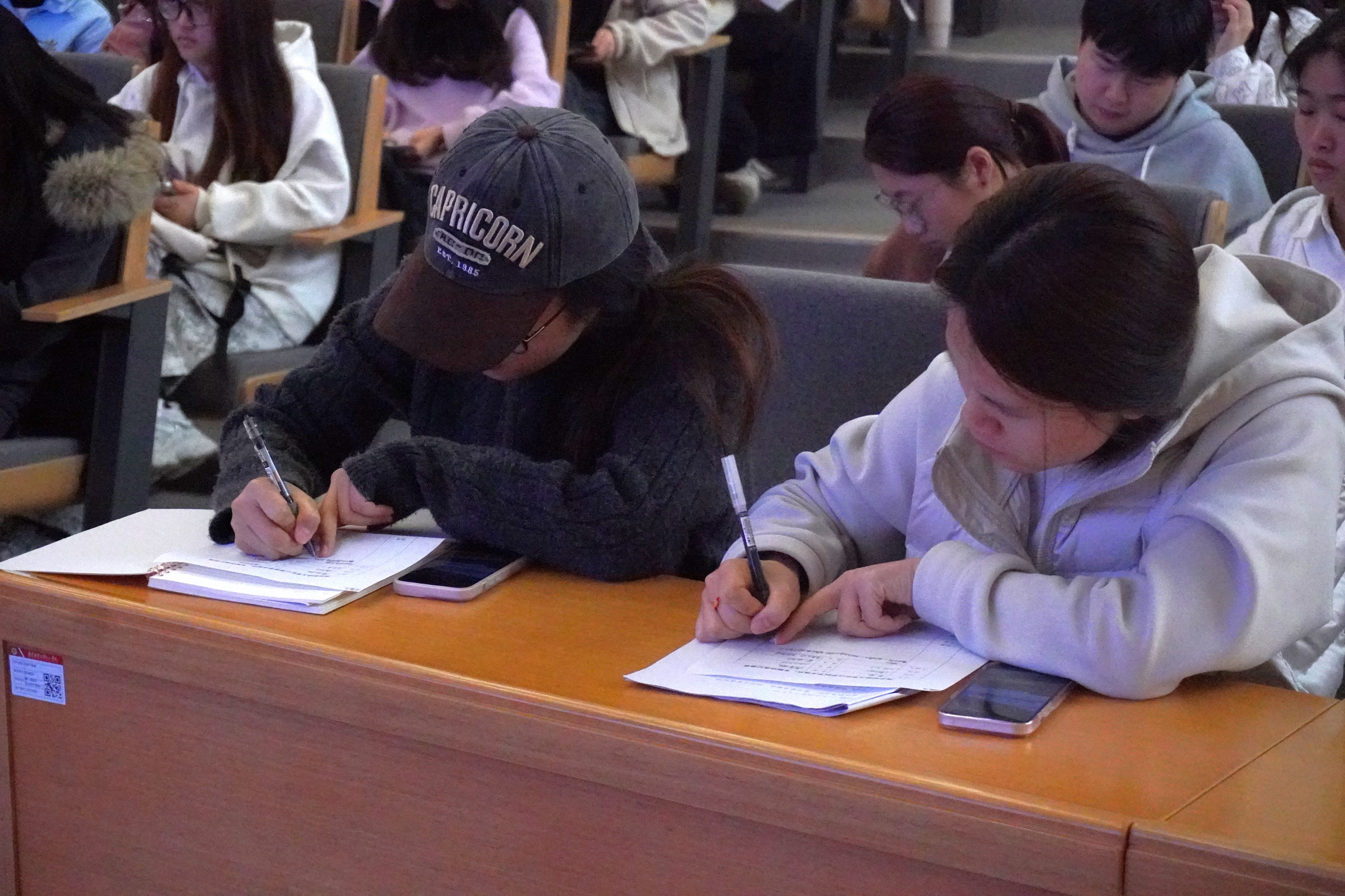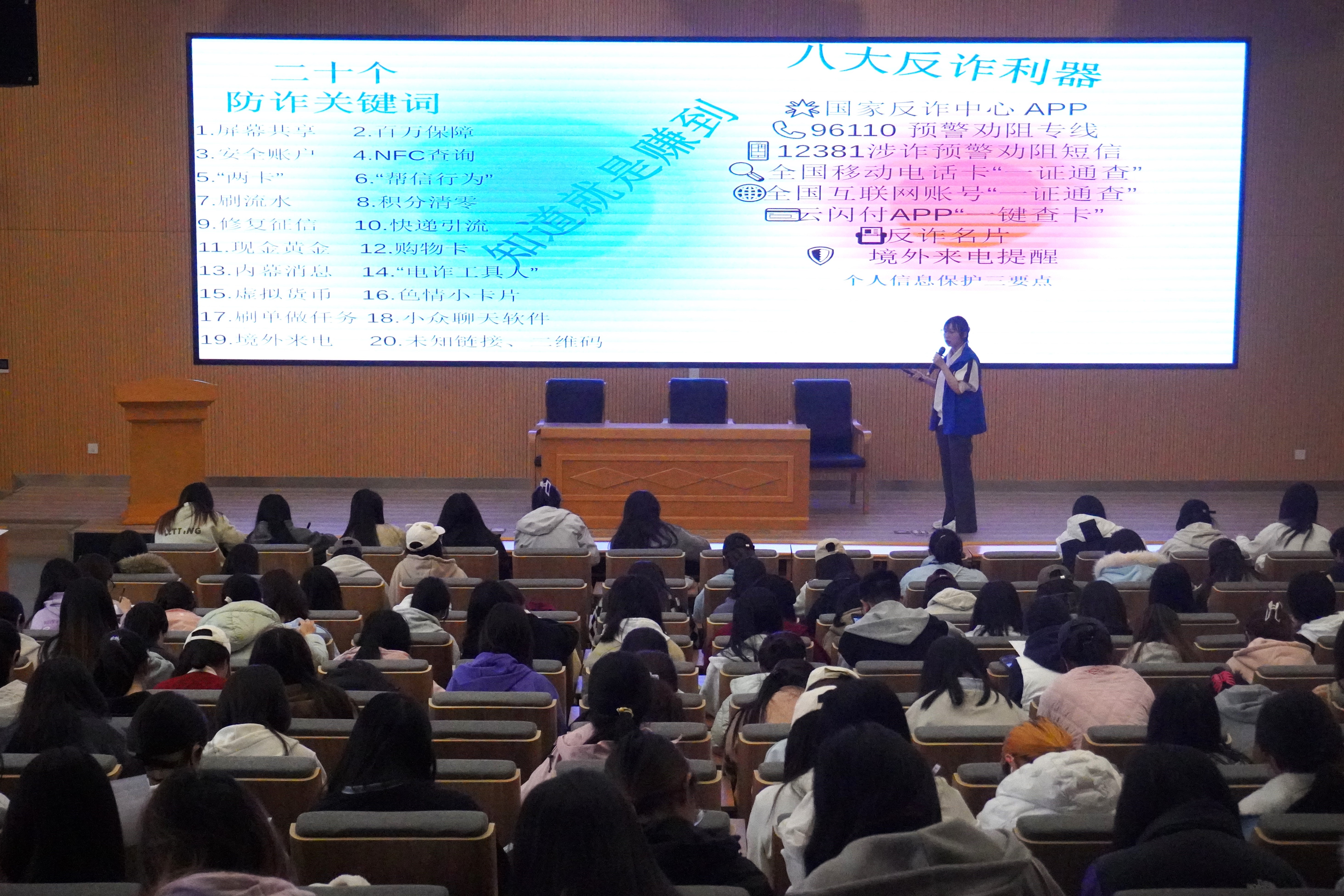 活动伊始,讲座立足大学生校园生活实际,聚焦入学至毕业全阶段高频诈骗风险,严格依据《中华人民共和国反电信网络诈骗法》《中华人民共和国刑法》等相关法律法规,为在场学生带来系统全面、实用性极强的反诈普法教育。宣讲团骨干成员分“识骗、防骗、知法、维权”四大板块展开深入讲解。“识骗篇”针对不同年级学生,拆解刷单、求职和考研等全套路流程;“防骗篇”提供涵盖个人信息保护、社交风险防范和官方工具使用全场景避坑指南;“知法篇”重点剖析帮助信息网络犯罪活动罪的定罪标准与法律后果,结合“断卡行动”,为学生厘清法律红线;“维权篇”详细梳理被骗后的应急步骤、收集证据方法及合法维权渠道,为学生提供坚实法律保障。现场还穿插情景提问和有奖竞答环节,同学们踊跃参与。