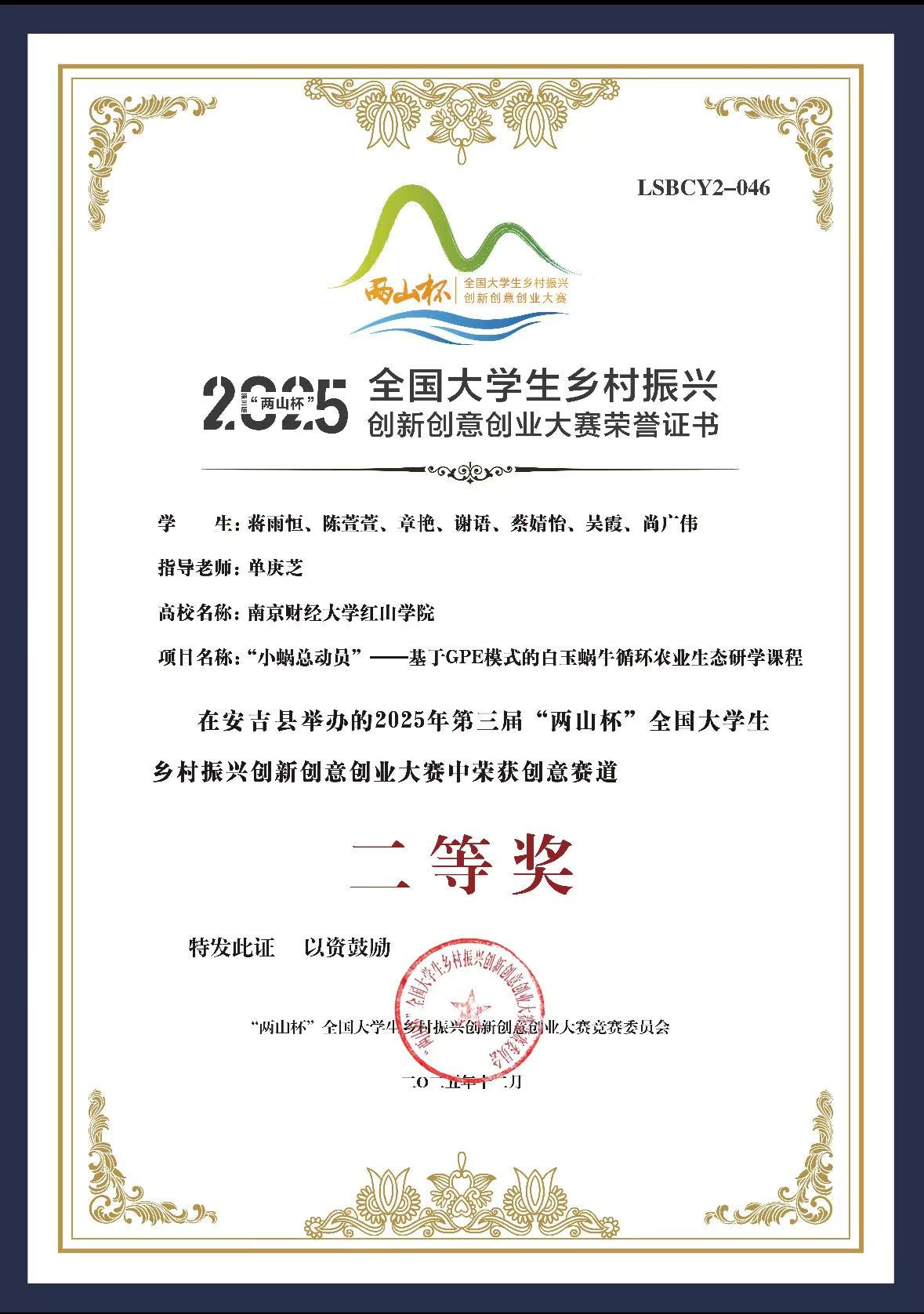 二等奖证书金奖获奖截图团队调研合影为深入践行“绿水青山就是金山银山”的“两山”理念,主动对接“千万工...