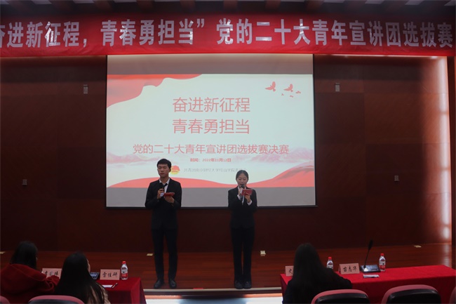 演讲比赛决赛开幕选手演讲现场王晨婷副书记总结点评评委与选手合影10月19日,开云官网“青春献礼二十大,强国有...