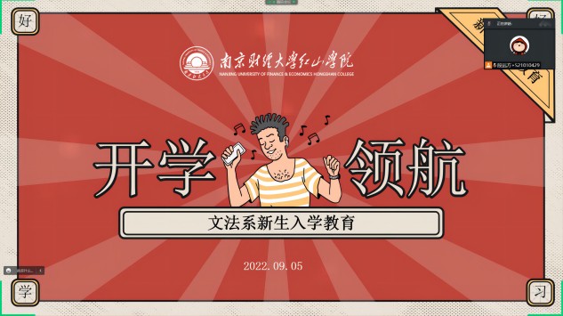 9月5日,文法系通过腾讯会议平台举办“新生入学教育”线上会议。本次会议邀请文法系英语专业负责人沈文霄教授、法学专业负责人李磊教授、新生辅导员高涵以及法学2052张博同学主讲,文法系学工秘书兼团总支书记段远方主持,我系全体大一新生学生在线参加。