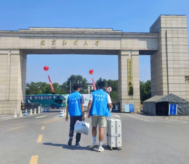 迎新志愿者帮助新生搬运行李
