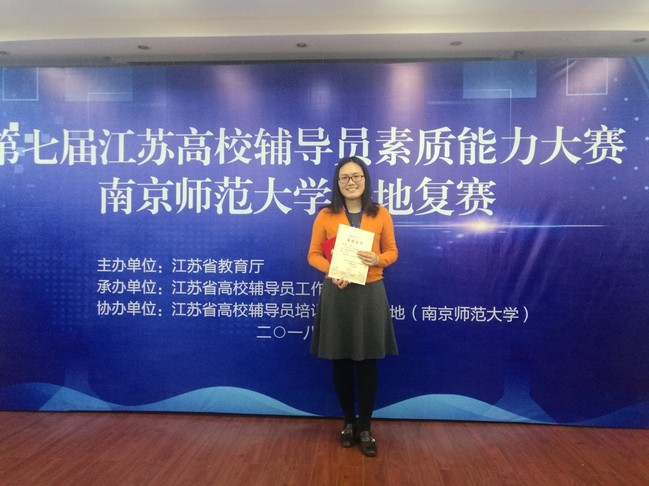 2018年4月25日至26日,由江苏省教育厅主办的第七届江苏高校辅导员素质能力大赛复赛在南京师范大学仙林校区举行。共有来自南京、扬州、镇江三个地区本科高校、独立学院的39名代表参赛。杨红艳老师代表开云官网参加比赛。