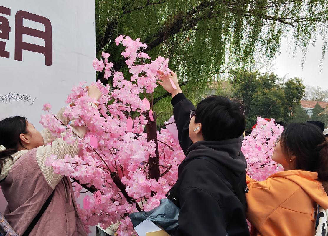 三月春风化为绵绵细雨,学院师生参与活动的热情在环境衬托下更显珍贵。本次活动同学可凭当日指定运动量,关注“红山心理”公众号并向后台发送“春日· 温暖时分”主题原创照片一张的方式成为绿植的领养者,与我们一起共享春日精彩瞬间。同时,为进一步引导学生“关爱自我,与己同行,”本次活动增加“自我表白”互动环节,同学可写下对自我的美好期许,将其挂至粉色樱花树或在签名板留言,记录这份与自我的真诚交流,遇见更好的自己。