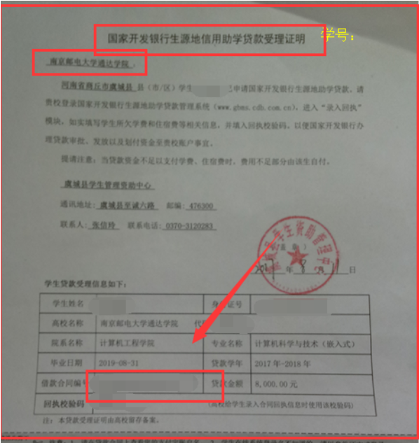 现开展国家开发银行(请注意这里是:国家开发银行,其他银行不收取)信用助学贷款回执验证码(回执校验码)的收取工作。相关工作内容如下: