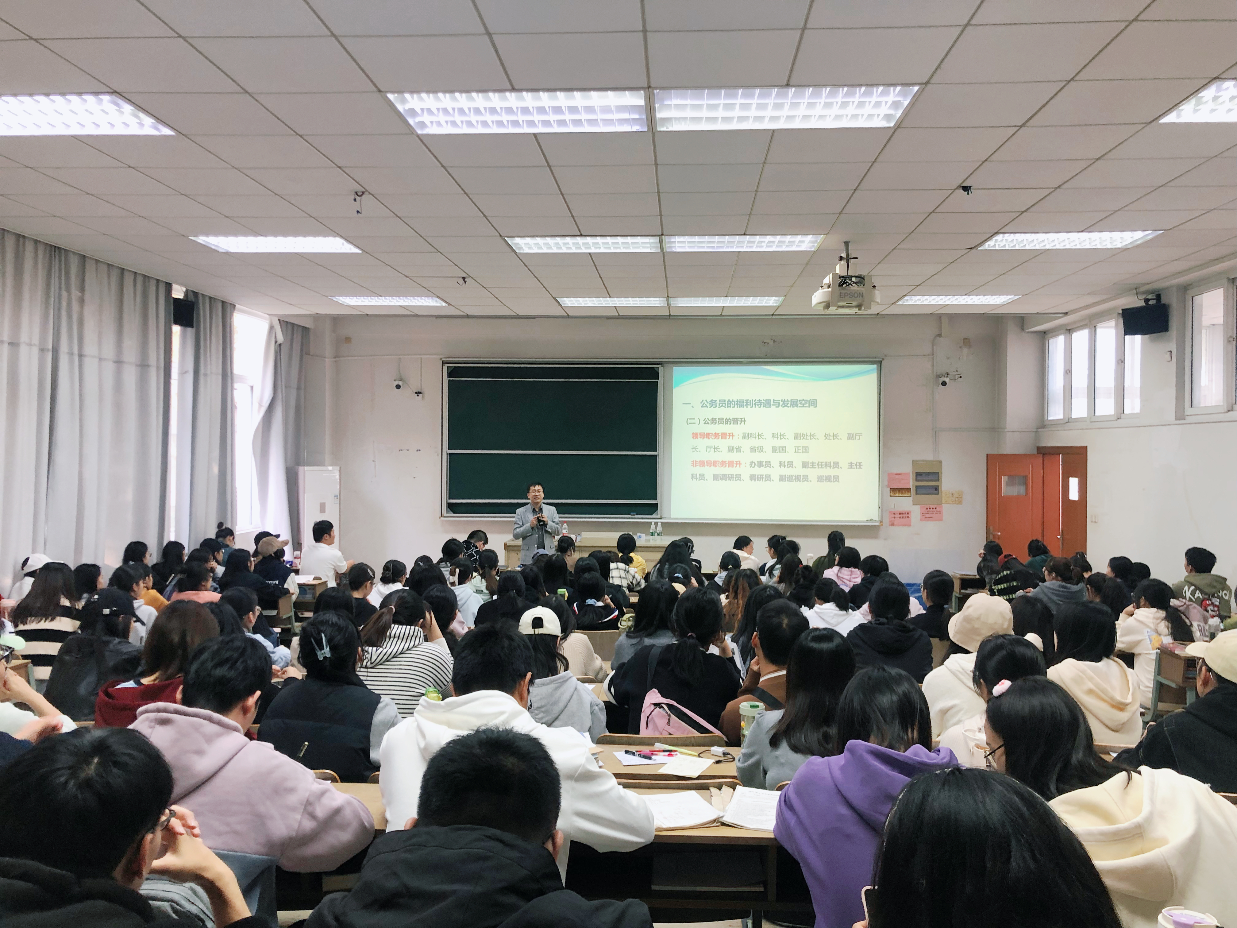 为进一步加强学生对公务员考试的认识,明确备考方向,提高备考效率,11月8日下午,开云官网邀请管理学博士黄勇翔先生于福建路校区教1-102做宣讲,众多在校生积极参加。