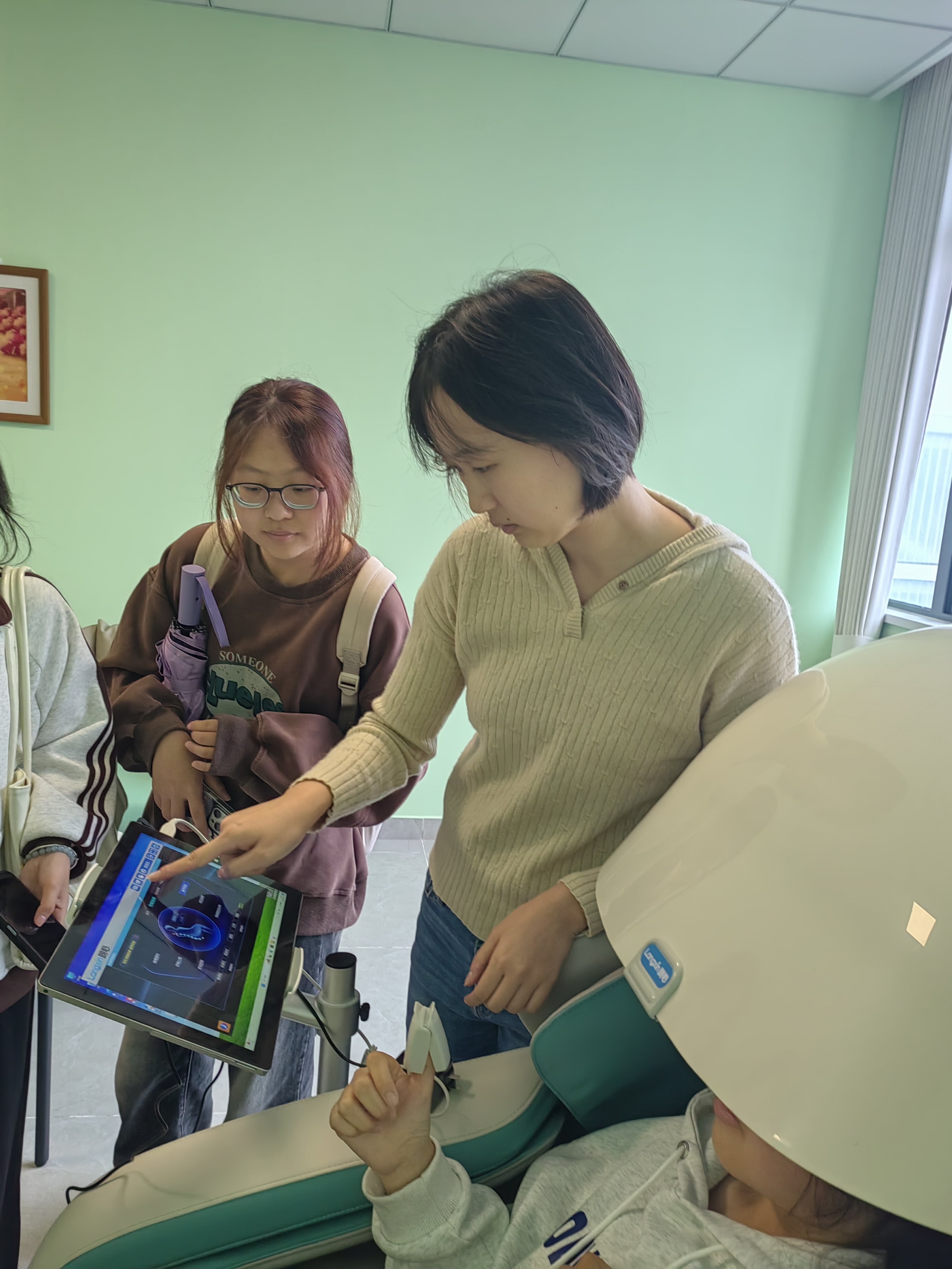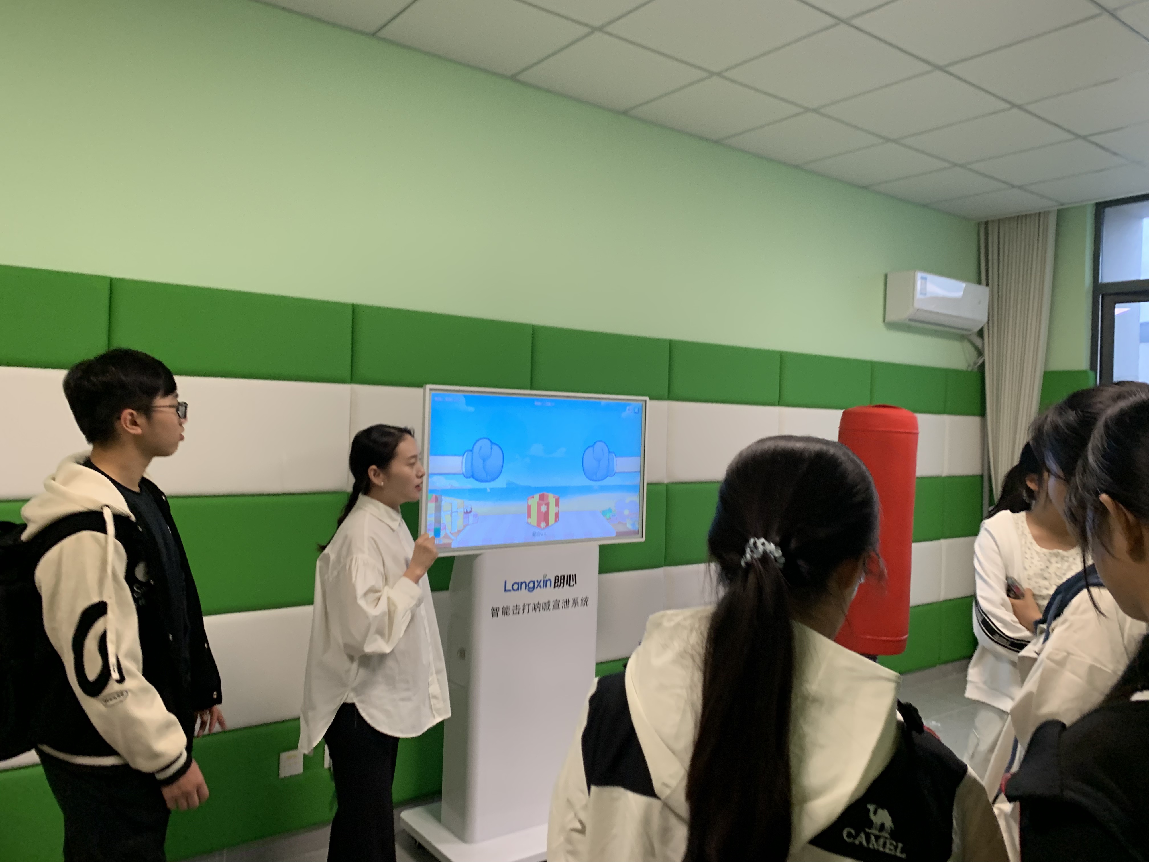 参观过程中,同学们对心理中心现有设备产生了浓厚的兴趣。随后,朱晓洁老师对于心理中心现有心理认知能力训练系统、身心减压舱、智能击打呐喊宣泄系统的功能和使用进行了详细说明与演示,并指导学生进行体验。