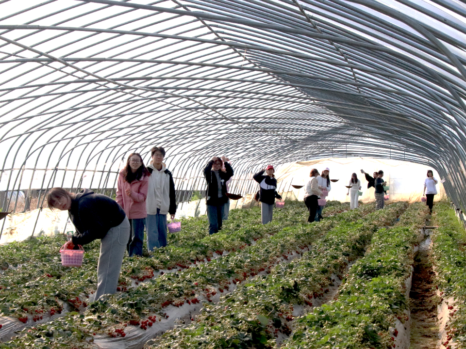 随后,学员们来到漆桥街道现代农业基地,在工作人员的带领下,亲身体验了草莓采摘的过程,深入了解科学技术与传统经验双重赋能下的农业生产。
