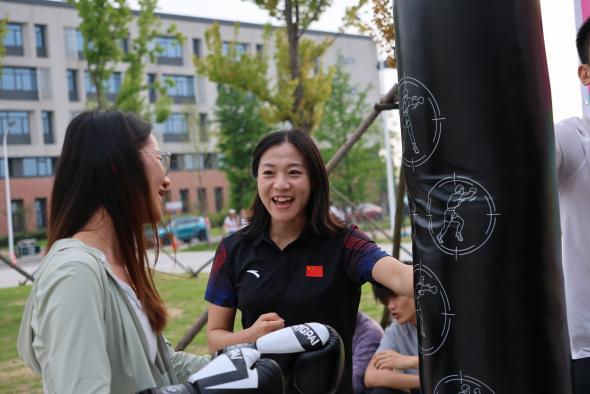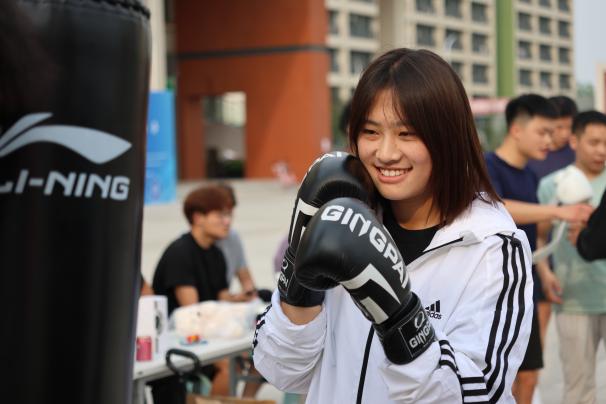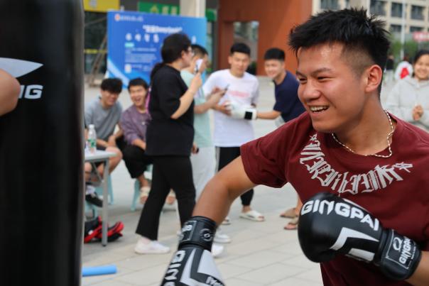 本次活动由“愤怒节奏拳击”和“发泄情绪打靶”作为开场热身活动,现场拳击教练宋方老师指导学生带上拳击手套,通过击打沙袋和击打手靶的方式引导学生释放愤怒和负面情绪。