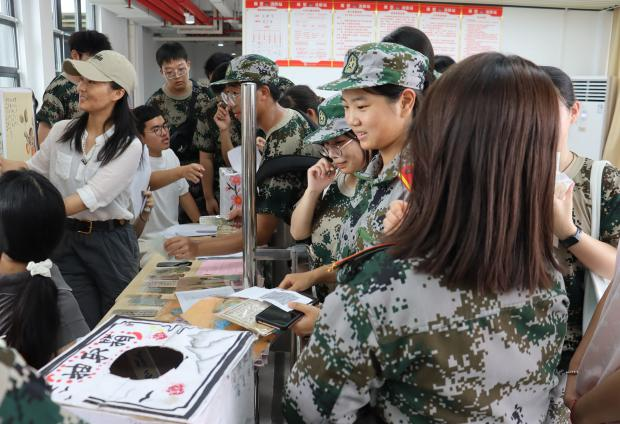 “这是《清明上河图》吧?我记得画里有这样的拱桥!”“这字看着像王羲之的风格,难道是《兰亭集序》?”⋯⋯现场不时传来同学们的讨论声,有人对着碎片细细揣摩,有人和同伴小声交流思路,一片热闹景象。