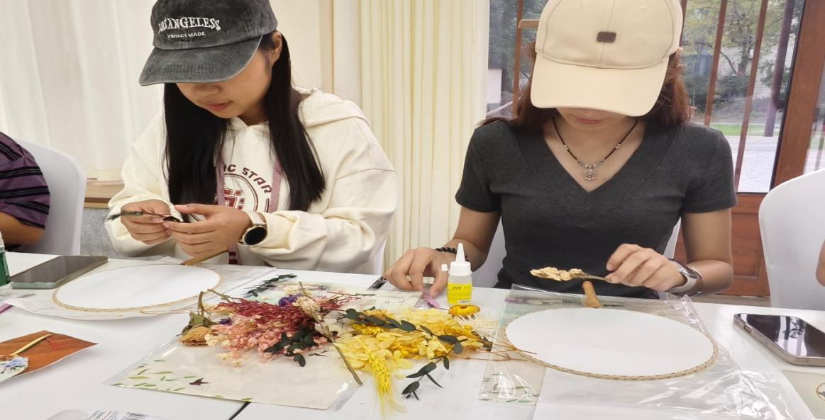 随后,同学们以小组为单位,认真学习文创产品团扇的制作技艺。在专业老师的指导下,大家发挥创意,积极参与制作过程,不仅提升了动手能力,还在动手实践中体会了乡村文旅产业的创新活力。活动过程中,同学们认真聆听讲解、积极与两村代表交流,充分展现红山学子的良好形象。