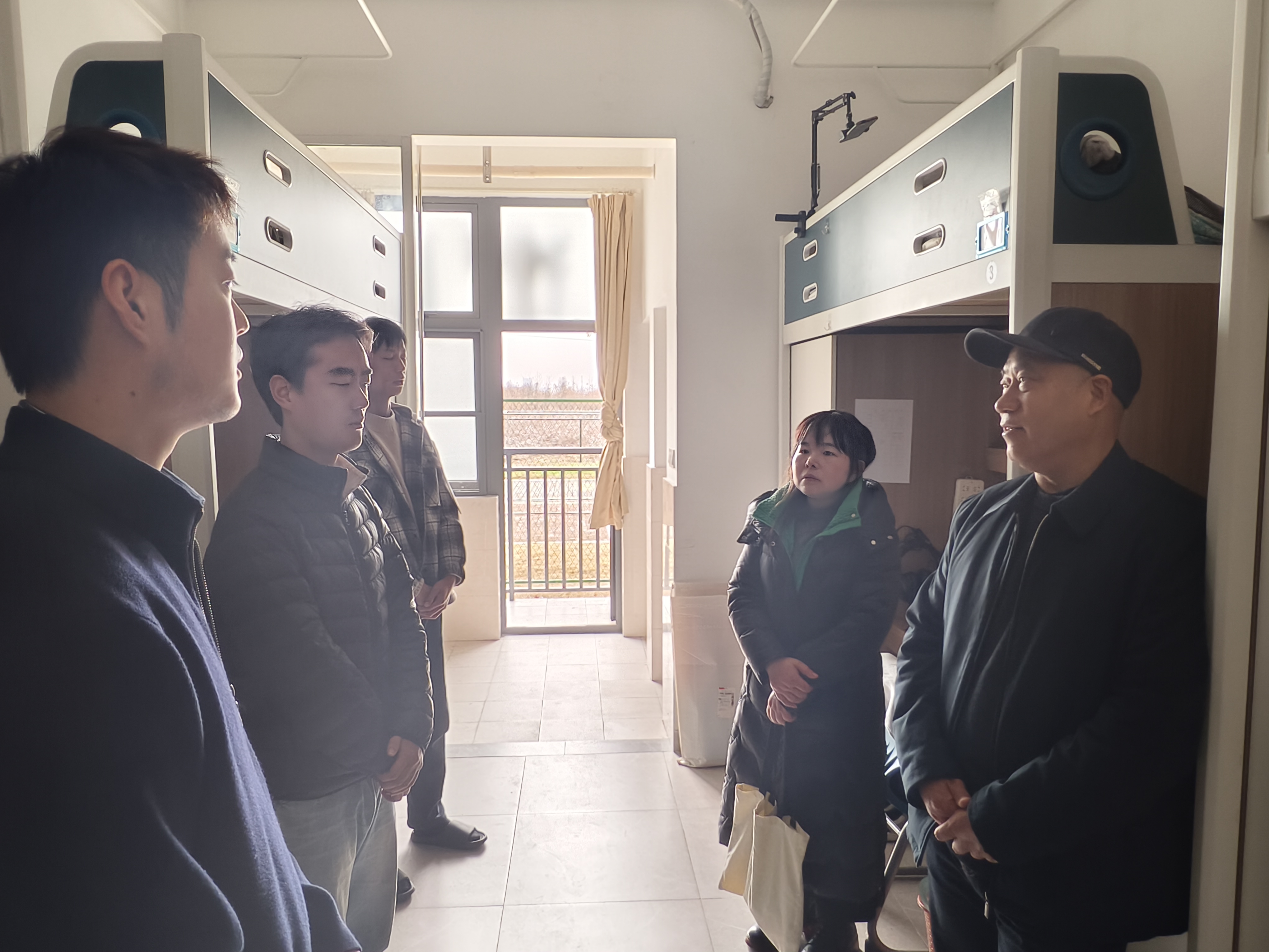 为弘扬拥军优属优良传统,切实做好退役复学大学生关心关爱工作,3月4日中午,学院党委副书记王晨婷深入学生宿舍走访慰问退伍军人学生。学院党总支书记、院长刘志国,党总支副书记陈玉龙,团总支书记宋婧及辅导员倪梓薇、班主任陈小雷陪同。