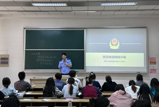 社区民警刘庭闲做讲座互动现场讲座现场为进一步提高在校学生的防骗意识和能力,有效遏制电信网络诈骗案件的...