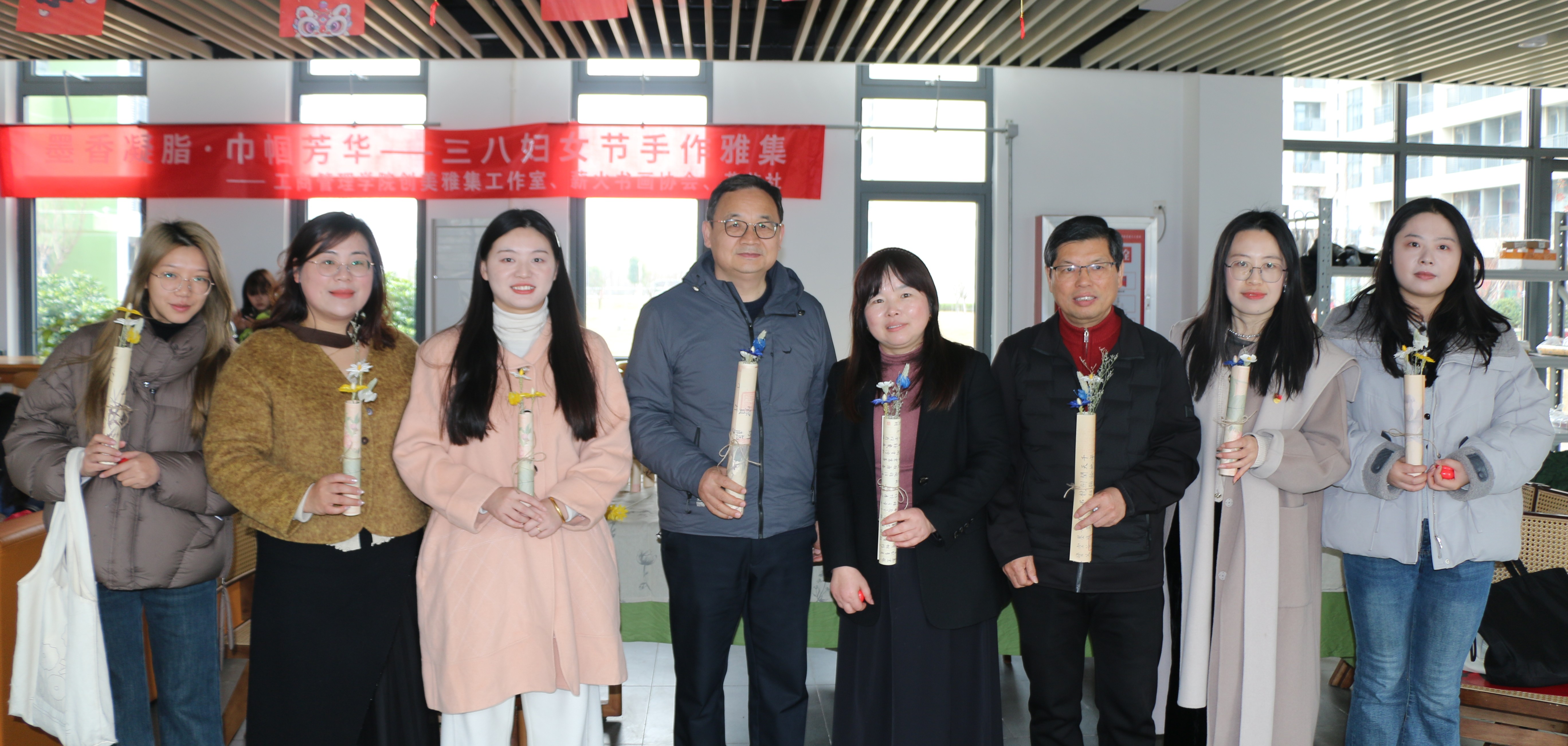 为传承中华优秀传统文化,丰富女教职工精神文化生活,3月6日上午,工商管理学院创美雅集辅导员工作室联合薪火书画社、花艺社,在学院一号站大厅举办“墨香凝脂 巾帼芳华”三八妇女节手作雅集活动。