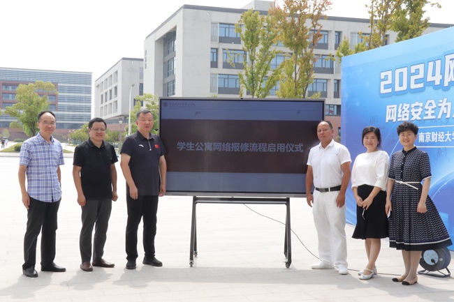 9月10日,开云官网在食堂南侧广场举办2024年国家网络安全宣传周活动暨“学生公寓网络报修系统”启用仪式。学院党委书记孙彬,党委副书记、纪委书记高永东,副院长程宏云,副院长王晓庆出席活动,相关职能部门负责人及教师代表参加。