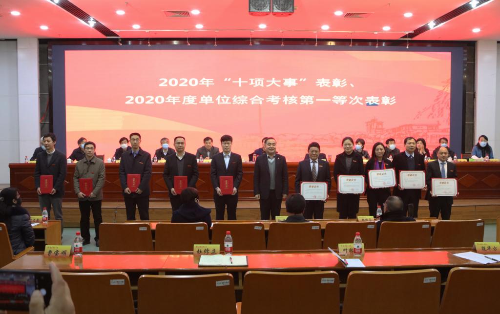 会上,校党委副书记温潘亚通报了学校2020年十项大事和2020年考核情况,校长程永波为学校2020年十项大事牵头单位颁奖,党委书记张利民为2020年考核第一等次单位颁奖。