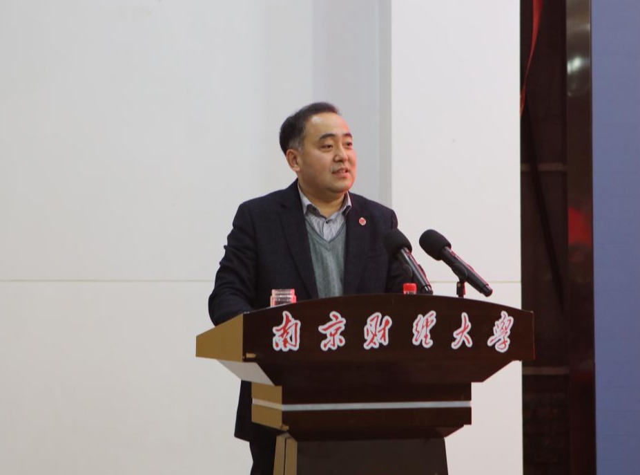 张利民书记讲话。他指出,2021年是我国开启全面建设社会主义现代化国家新征程、向第二个百年奋斗目标进军的起步之年,是“十四五”开局之年,中国共产党迎来建党100周年,是学校启动高水平大学建设的开局之年,也是学校冲刺博士学位授予单位和全力迎接全国第五轮学科评估的关键之年。人勤春来早,奋斗正当时。做好今年及今后一个时期的工作,要坚持以习近平新时代中国特色社会主义思想为指导,认真开展党史学习教育,紧扣立德树人根本任务,立足新发展阶段,贯彻新发展理念,服务构建新发展格局,以推动高质量发展为主题,以改革创新为根本动力,深入实施“财经底色”“粮食特色”“工科亮色”“文体增色”四大特色工程,起步即冲刺,开局即争先,在新的发展平台上再出发,把学校事业发展不断推向前进,为开启全面建设社会主义现代化国家新征程、加快建设“强富美高”新江苏贡献更大的智慧和力量,以优异成绩庆祝建党100周年。