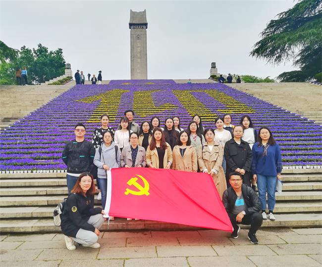 4月21日下午,天空不时飘着雨,文法系党支部全体党员,来到庄严肃穆的雨花台烈士陵园,在埋下忠骨的青山脚下,重温入党誓词,感怀英雄心迹。