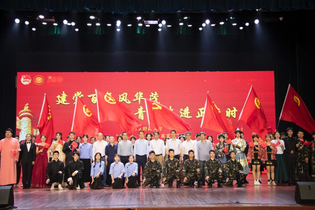 第一篇章“润锋芒·筑梦百年”,聚焦青年之心。“逗你玩儿”相声社、寒舞纪街舞社带来的表演《南财好声音》《筝鸣》,让大家对新时代好青年的认识重新思考;工商管理学院与新闻学院带来的诗朗诵《志青春·可爱的中国》《红色传声,薪火相承》,铿锵字句间饱含了对祖国的诚挚感情。第二篇章“启锦航·笃行致远”,聚焦青年之力。由鹿鸣汉服社和劲粤团带来的表演《庆百年·溯梦华夏》,通过汉服之美韵,展现华夏千年的沧桑巨变;神寂动漫社的《与梦盛开》,富有活力的舞蹈律动,体现追逐梦想的渴望与坚持;会计学院的《与妻书》与国际经贸学院的青马班学员带来的《破晓》,引导青年在熠熠生辉的革命精神中启迪心智,净化灵魂。第三篇章“续流光·承继初心”,聚焦青年之魂。轻舞飞扬轮滑社的表演《精武门·中国魂》,以热情、奔放的青春活力,展现出生命的力量之美;由我校退伍学生带来的《报国魂》,号召大家以青春的汗水、奉献的品质,在新时代自觉投身于社会主义现代化国家建设浪潮之中,服务社会,奉献人民。最后,在《筑梦新时代》的高昂歌声之中汇演圆满落幕。