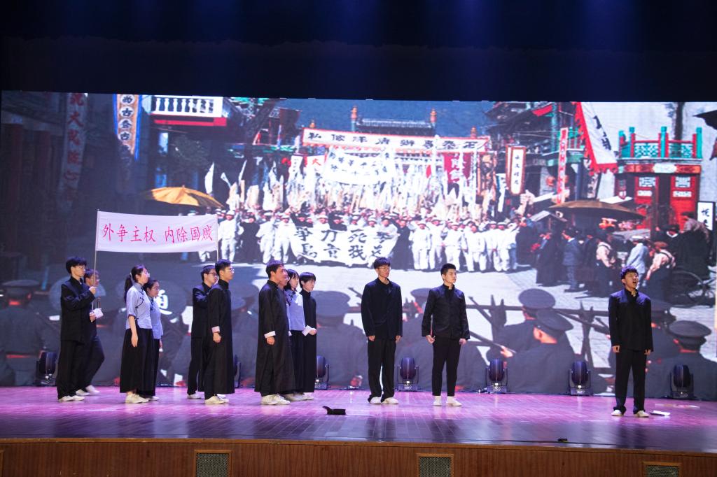汇演现场掌声阵阵、气氛热烈、高潮迭起,在奋进与拼搏中彰显出我校青年“自谦 自信 务实 超越”的精神风貌,表达出青年学子对党和国家的炽热情感。