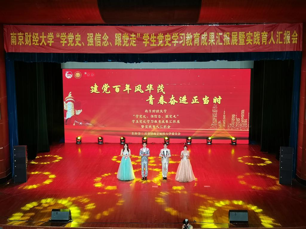 建党百年风华茂,青春奋进正当时。5月21日晚,由校团委举办的“学党史,强信念,跟党走”学生党史学习教育成果汇报展暨实践育人汇报会在仙林校区大学生活动中心礼堂举行。党委常委、副校长李群出席汇报会,党委办公室、校长办公室,研究生院,教务处,国有资产管理处,国际教育学院,离退休党工委、离退休工作处,对外联络处,信息化建设管理处,校团委,体育部相关负责人,各学院党委副书记、团委书记与我校近千名学生共同参与这场青春的盛会,共上一堂生动的党史学习主题团课。