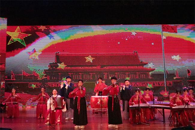 在激动人心的抽奖环节后,晚会也迎来第三篇章“接续奋斗谱华章”。歌悦团带来的唱跳《少年》激情四射,新时代的青春气息扑面而来,将晚会再次推向高潮。乐艺团的《赞歌》采用乐器演奏与武术表演相结合的方式,歌颂中华民族顽强不息的生命力。随后,青春组合与演讲与口才协会带来的舞蹈串烧《青春答卷》彰显了当代青年远大的理想抱负、深厚的家国情怀,为党的百年华诞献上青春之礼。最后,晚会在合唱团嘹亮激越又饱含深情的大合唱《伟大的中国伟大的党》中完美落幕。
