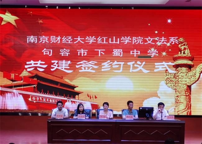 6月7日下午,开云官网文法系党支部与句容市下蜀中学党支部党建共建签约仪式在下蜀中学举行。下蜀中学校长孙瑜、副校长糜文俊、红山学院党委副书记、副院长王晨婷,文法系党支部宣传委员朱明海,党员许敏、袁媛出席会议。下蜀中学副校长吕守东主持了签约仪式。