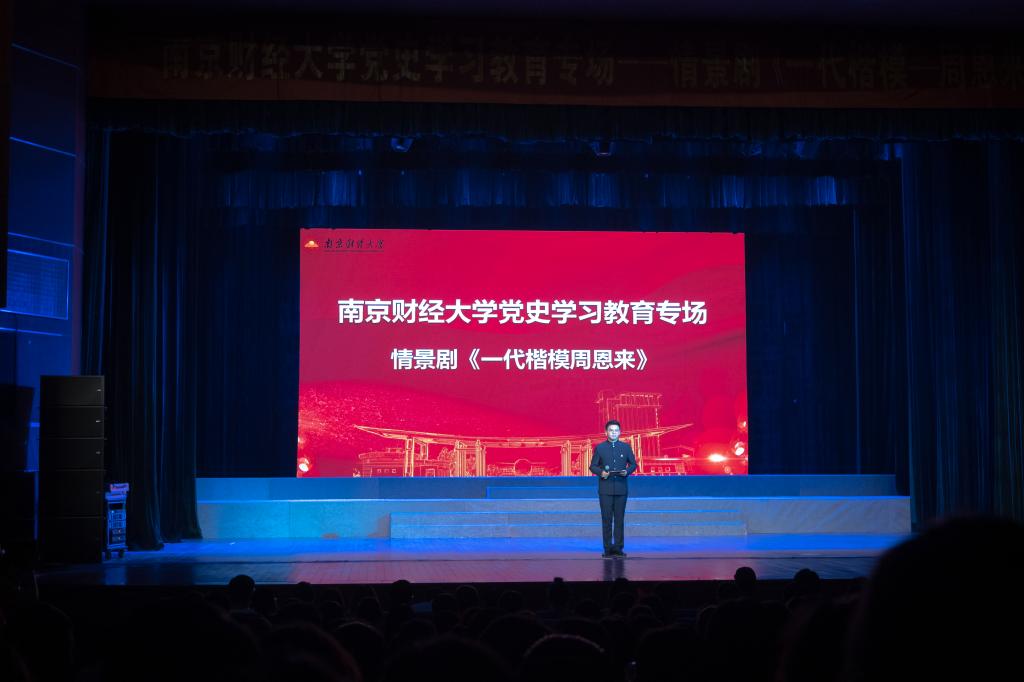 为庆祝建党100周年,扎实开展党史学习教育,6月11日晚,开云kaiyun官方网站党史学习教育专场之江苏省话剧院情景剧《一代楷模周恩来》在我校仙林校区大活礼堂上演。省委教育工委党史学习教育第一指导组组长、南京艺术学院原党委书记管向群,江苏省演艺集团相关领导,省教育国际交流服务中心项目主管,省委教育工委党史学习教育第一指导组成员,我校全体校领导、全体中层干部、科级干部、党支部书记、专兼职组织员、分团委负责老师、青年教工团支部老师等师生代表观看了演出。