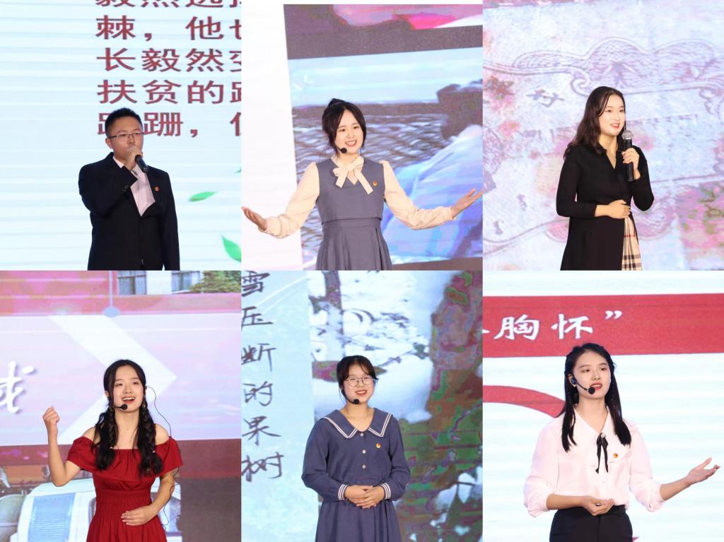 十位选手经过初赛、复赛的层层选拔,来到了决赛舞台。来自湖南的金融2104班奉怡君分享了十八洞村脱贫攻坚的奋斗故事:空中飘着炊烟,苗寨里春光正好,青年一代要接过乡村振兴的接力棒,做新时代的实干家。来自人资2102的赵涵艺同学分享了三代人与大连港的独家记忆:家是港口国是船,希望站在百年地平线上的南财学子都能怀瑾握瑜明耀光景,身倚清辉铸国芳华。来自食品科学与工程学院2103班的汤诗嘉分享了爷爷的故事:他曾是一名空军地勤人员,一生为党为民尽显时代担当,南财学子也将心怀炬火,踩着前辈的脚步,栉风沐雨,勇敢迈向自己的道路……陪伴选手一路过关斩将的演讲及PPT制作小导师在每位选手演讲结束后,与主持人进行分享互动。