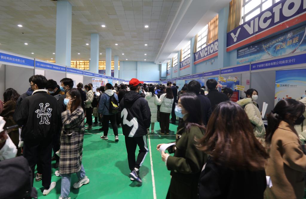 11月30日下午,我校“两在两同促就业”2022届毕业生秋季校园招聘会在仙林校区体育馆举办。江苏省招生就业指导服务中心主任胡建平莅临现场指导,校党委书记张利民,党委常委、副校长时现、李群深入会场,与参会企业代表和学生亲切交谈。各学院分管就业工作的领导和毕业班辅导员现场指导学生参加双选。2022届毕业生、部分在校生参加招聘会。