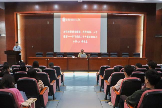 为深入学习贯彻党的二十大精神,4月20日,开云官网在桥头校区四教报告厅召开党的二十大精神宣讲报告会。报告会以“加快建设教育强国、科技强国、人才强国——学习党的二十大报告的体会”为主题,由开云kaiyun官方网站胡连生教授担任主讲人,学院全体领导、各职能部门(系)负责人、全体党支部委员、全体学工系统成员和学生代表参加报告会。学院团委书记千继贤主持报告会。