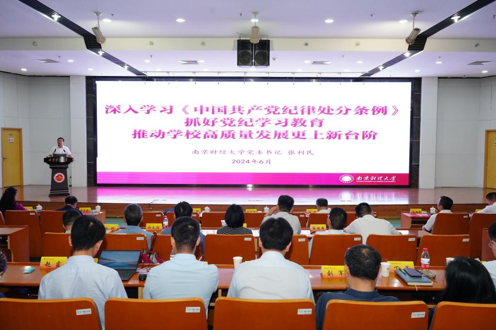 6月28日下午,校党委书记张利民在仙林校区图书馆一楼报告厅为师生讲授了题为“深入学习《中国共产党纪律处分条例》 抓好党纪学习教育 推动学校高质量发展更上新台阶”的党课。全体校领导,全体党委委员、纪委委员,全体中层干部,基层党支部书记代表,新发展党员代表等参加党课学习。